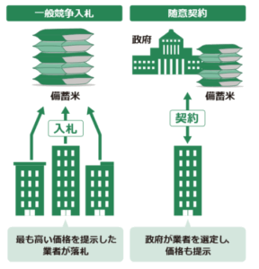 政府による備蓄米の売り渡しはこれまで「競争入札」で行われてきましたが、この場合、最も高い価格
