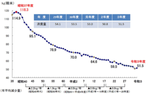 米の消費量の推移(1人1年あたり) 画像引用元:農林水産省HP