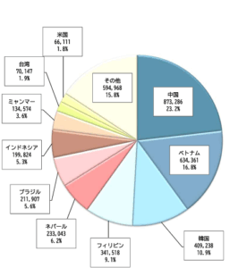 国籍・地域別 在留外国人数の構成比(2024年末時点) 画像引用元:出入国在留管理庁HP