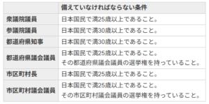 被選挙権を有するために備えていなければならない条件 画像引用元:総務省HP
