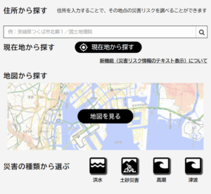 国土交通省ハザードマップポータルサイト「重ねるハザードマップ」の画面