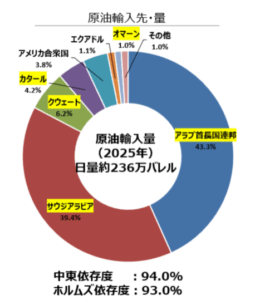 日本の原油輸入先(2025年) 画像引用元:経済産業省 資源エネルギー庁HP